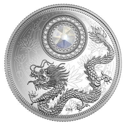 Ausgeglichenheit und Freude soll die Perle den Geburtstagskindern im Juni bringen. Die neueste Ausgabe der Geburtsstein-Serie der Royal Canadian Mint präsentiert wieder einen funkelnden Swarovski-Kristall, diesmal mit Perlmuttglanz. Außerdem zeigt die Silbermünze ein asiatisch inspiriertes Design mit Lotusblüten und einem detailreich gestalteten Drachen. Die Auflage ist wie die Vorgängern auf 3.000 Exemplare limitiert.