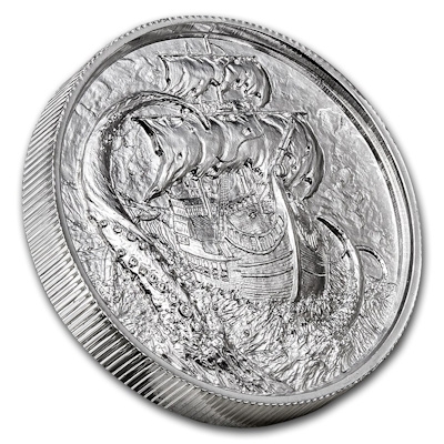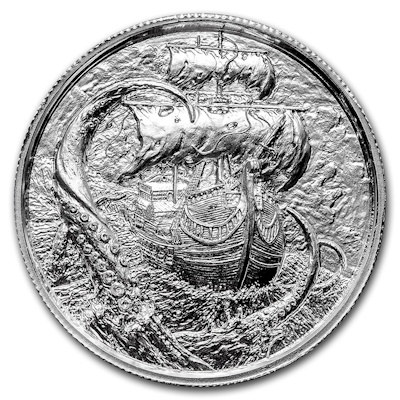 privateers-kraken-2-oz-silberDie Freibeuter-Serie aus den USA geht in die nächste Runde: Diesmal zeigen die Sammlerstücke aus 2 Unzen Feinsilber ein sagenhaftes Monster – den Kraken. Dank der Prägung in Ultra High Relief präsentieren die Silberstücke ein besonders detailreiches und lebendiges Motiv, das den Betrachter in seinen Bann zieht. Nach der Sirene und der Ausgabe The Captain ist damit ein neues Schmuckstück in Stempelglanz-Qualität für Sammler erschienen.