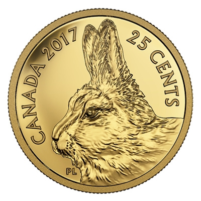 Die kleinste Goldmünze der Royal Canadian Mint zeigt mit Vorliebe Tiermotive wie zum Beispiel Chipmunk, Grizzly oder Rock Rabbit.