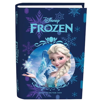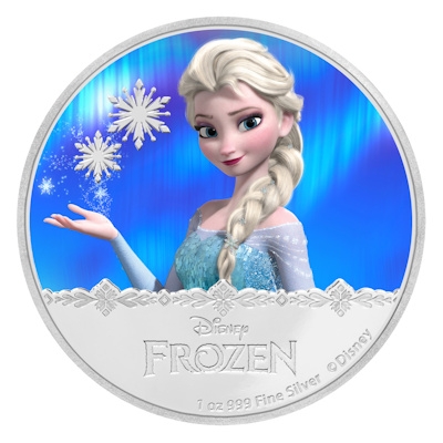 disney-frozen-elsa-1-oz-silber-koloriert-verpacktDie Silbermünze zeigt die blonde Elsa vor eisblauem Hintergrund. Schneeflocken über ihrer ausgestreckten Hand symbolisieren ihre besondere Kraft. Das Sammlerstück aus 1 oz Feinsilber (Feingehalt 999/1000) hat einen Durchmesser von 40 Millimetern und einen geriffelten Rand. Das Ausgabeland ist Niue, der Nennwert beträgt 2 Dollars. Die Auflage ist auf 10.000 Stück begrenzt. Das Etui ist wie bei der Prinzessinnen-Serie als Märchenbuch gestaltet. Darin ist die Silbermünze in eine glitzernde Winterlandschaft eingebettet. Auch eine kurze Beschreibung ist enthalten.