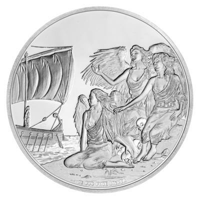 Auf der letzten Ausgabe der Silbermünzen-Serie Creatures of Greek Mythology entdeckten die Münzsammler, wie Odysseus den Zyklopen Polyphem blendete. Auf der sechsten Edition begegnen sie dem antiken Helden wieder – und auch diesmal hat er ein gefährliches Abenteuer zu bestehen: Zusammen mit seinen gefährten muss er an der Insel der Sirenen vorbeisegeln, die mit ihrem bezaubernden Gesang Seeleute in den Tod locken. Wie die Vorgänger hat diese Ausgabe eine limitierte Auflage von 2.000 Stück und wird in einem Beutel in Wildlederoptik ausgeliefert.