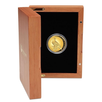 Als größter Raubvogel Australiens hat der Keilschwanzadler eine beachtliche Flügelspannweite von über zwei Metern. Neben dem keilförmigen Schwanz, an dem man den Vogel im Flug gut erkennen kann, gehören auch die gefiederten Beine zu seinen typischen Merkmalen. Diese sind auf dem Motiv der Goldmünze genau zu sehen. Entworfen hat den stolzen König der Lüfte der amerikanische Künstler John Mercanti. Er ist praktisch ein Adler-Experte: Während seiner langen Tätigkeit für die US Mint entwarf er auch das Motiv des American Silver Eagle.