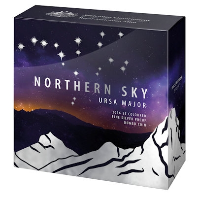Nach der Auftakt-Ausgabe Kassiopeia werfen Münzsammler mit der Royal Australian Mint jetzt wieder einen Blick in den nördlichen Nachthimmel: Der Große Bär ist eines der berühmtesten Sternbilder; einen Teil der Konstellation kennen Sterngucker als Großen Wagen. Mit viel Fingerspitzengefühl und aufwendigen Farbapplikationen auf die gewölbte Münzfläche gebannt, entfaltet das Sternbild auch auf der Silbermünze seine ganze Faszination. Die Auflage des Sammlerstücks für Astronomiefans ist auf 5.000 Stück begrenzt.