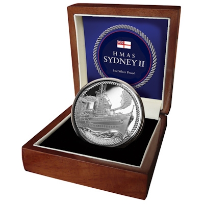 Ein Schmuckstück für alle Seefahrt-Fans und Münzsammler ist die Silbermünze HMAS Sydney II. Dieses Sammlerstück aus 1 oz Feinsilber ist in hochwertigem High Relief geprägt und einem der bekanntesten Schiffe der australischen Marinegeschichte gewidmet. Zum 75. Jubiläum seines Untergangs erinnert die Silbermünze an das Schicksal des Kreuzers „Sydney“: Im Zweiten Weltkrieg sank er nach einem Gefecht mit dem deutschen Hilfskreuzer „Kormoran“.