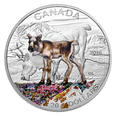 Am unteren Rand ist der Nennwert von 20 CAD zu finden, rechts das Prägejahr 2016. Die in höchster Proof-Qualität geprägte Münze hat einen Durchmesser von 38 Millimetern und einen geriffelten Rand. Das silberne Sammlerstück enthält 1 oz Feinsilber und hat einen Feingehalt von 99,99 Prozent. Die Silbermünze wird im Etui und mit nummeriertem Echtheitszertifikat ausgeliefert. Das Karibu ist bereits die zehnte Ausgabe dieser l Silber-Serie. Bereits erschienen sind unter anderem Schwarzbär, Kaninchenkauz, Schneeziege, Papageitaucher, Weißwedelhirsch, Stachelschwein, Waschbär und Eistaucher.