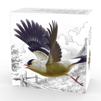 colourful-birds-of-canada-goldfinch-1-oz-silber-koloriert-shipperDie Silbermünze zeigt den leuchtend kolorierten Goldzeisig im Flug über einen Holzzaun. Im Hintergrund ist ein Farmhaus auf einer Anhöhe zu sehen. Das Sammlerstück enthält 1 oz Feinsilber und hat einen Feingehalt von 99,99 Prozent. Der Münzrand ist geriffelt. Der Durchmesser liegt bei 38 Millimetern. Der Nennwert von 20 CAD ist am unteren Rand verzeichnet. Umseitig zeigt die in höchster Proof-Qualität geprägte Silbermünze ein Porträt von Königin Elizabeth II. Die Münze wird im Etui und einer Umverpackung im Seriendesign ausgeliefert. Die Auflage ist auf 6.500 Stück pro Ausgabe limitiert.