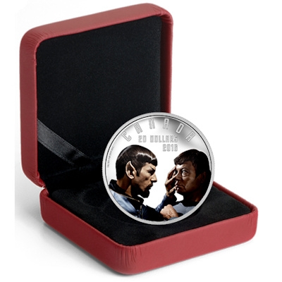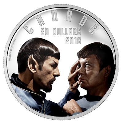 Auf der Silbermünze sieht man den Paralleluniversums-Spock, wie er eine Gedankenverschmelzung mit Dr. McCoy durchführt. Über den beiden Männern ist die Jahreszahl 2016 aufgeprägt, darüber der Nennwert von 20 CAD. Umseitig findet man das Susanna-Blunt-Porträt von Königin Elizabeth II. Die Silbermünze hat einen Durchmesser von 38 Millimetern. Der Münzrand ist geriffelt. Das Sammlerstück ist in höchster Proof-Qualität geprägt und enthält 1 oz Feinsilber bei einem Feingehalt von 99,99 Prozent. Es wird im Etui und einem Shipper im Star-Trek-Design ausgeliefert.