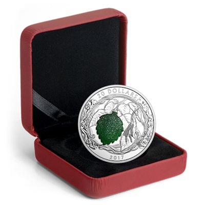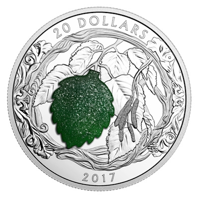 brilliant-birch-leaves-drusy-stone-2017-1-oz-silber-3Die Silbermünze hat einen Durchmesser von 38 Millimetern. Sie enthält 1 oz Feinsilber bei einem Feingehalt von 99,99 Prozent. Am oberen Rand findet man den Nennwert von 20 CAD, umseitig ist ein Porträt von Königin Elizabeth II. zu sehen. Der Münzrand ist geriffelt. Das Sammlerstück ist in höchster Proof-Qualität geprägt und wird im Etui inklusive nummeriertem Echtheitszertifikat ausgegeben.