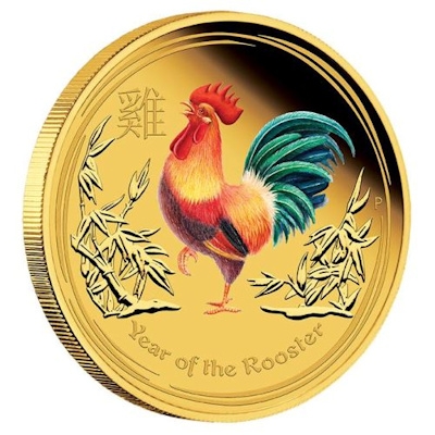 lunar-ii-rooster-1-oz-gold-koloriertWer Jahrgang 1921, 1933, 1945, 1957, 1969, 1981, 1993 oder 2005 ist, ist höchstwahrscheinlich unter dem chinesischen Zeichen des Hahns geboren. 2017 ist es wieder so weit: Das zehnte Zeichen in der asiatischen Astrologie übernimmt die Hoheit über ein Jahr. Die neuen Ausgaben der Lunar II-Serie der Perth Mint sind bereits erhältlich – in Silber und Gold, in Stempelglanz und Polierte Platte. Ein besonders schönes Sammlerstück ist die Goldmünze mit Farbapplikationen, die im stilvollen Etui mit Holzdeckel ausgeliefert wird.