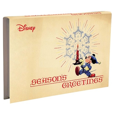 Eigens von den Künstlern des Studios entworfen und nur an ausgewählte Persönlichkeiten ausgegeben sind die Disney-Weihnachtskarten seltene Stücke, die einem kleinen Kreis vorbehalten blieben. Die Karte von 1948 zeigt Micky Maus im Schlafanzug und mit Nachtmütze. Er hat eine Kerze in der Hand, die einen Lichtschein in Form einer Schneeflocke auf den Hintergrund wirft. Während Micky mit leuchtenden Farbapplikationen gestaltet ist, ist das Hintergrundmotiv ins Silber graviert. Unten findet man außerdem den Schriftzug „Season’s Greetings“.
