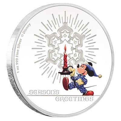 Auch 2015 ist bereits eine Silbermünze nach dem Motiv einer klassischen Disney-Weihnachtskarte erschienen.