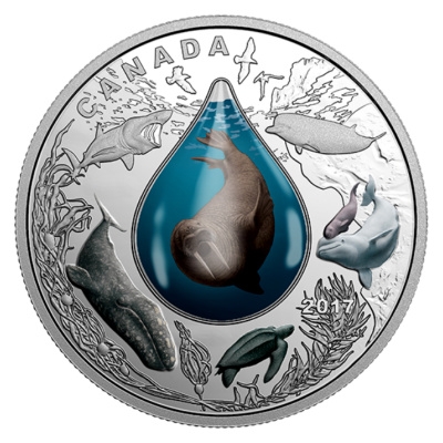 canadian-underwater-life-walrus-1-oz-silberDie Bedeutung des Wassers und die Vielfalt des Lebens in den Ozeanen vor Kandas Küsten sind das Thema der Silbermünzen-Serie „Canadian Underwater Life“ der Royal Canadian Mint. Die Besonderheit dieser Sammlermünzen ist ein Wassertropfen aus Glas, der sie zu einem dreidimensionalen Schmuckstück macht. Der Glastropfen im Zentrum des Motivs umschließt den jeweiligen „Star“ der Ausgabe – in diesem Fall das stolze Walross, das ein Bewohner der kanadischen Arktis ist.