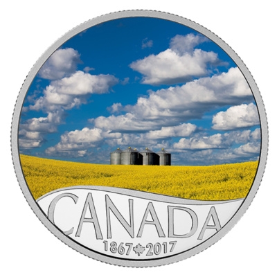 Die fünfte Ausgabe der Silbermünzen-Serie, die die Royal Canadian Mint anlässlich von Kanadas 150. Geburtstag gestartet hat, ist der Provinz Manitoba gewidmet. Damit sind die Münzsammler auf ihrer Reise durch die kanadischen Provinzen und Territorien nun in den Prärieregionen angelangt. Wie die Vorgänger-Ausgaben ist auch dieses Sammlerstück nach einem Foto aus dem Magazin Canadian Geographic gestaltet. Es zeigt ein weitläufiges, blühendes Rapsfeld, das dank aufwendiger Farbapplikationen schön zur Geltung kommt.