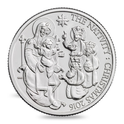 Das Motiv der Silbermünze erinnert an traditionelle Kirchenmalereien. Es zeigt links die Gottesmutter Maria mit dem Jesuskind auf dem Schoß und rechts die Heiligen Drei Könige, die ihm Gaben bringen. Der Stern, der sie nach Bethlehem geführt hat, ist oben zu sehen. Alle Figuren sind mit einem Heiligenschein geschmückt. Am Rand entlang ist zu lesen „The Nativity: Christmas 2016“ (Die Weihnachtsgeschichte: Weihnachten 2016). Der walisische Bischof Gregory Cameron zeichnet verantwortlich für das Design.