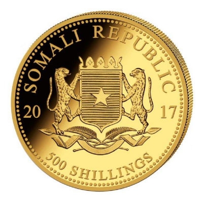Die Goldmünzen haben einen hohen Feingehalt von 999,9/1000 und werden in Stempelglanz-Qualität als Agenturausgaben geprägt. Somalia ist lediglich das Ausgabeland. Daher sind die Münzen mit einem Nennwert in Shillings gekennzeichnet, der sie zum gesetzlichen Zahlungsmittel des ostafrikanischen Landes macht. Bei der Version aus 1/2 oz Feingold beträgt er zum Beispiel 500 Shillings. Auf der Wertseite findet man das Nationalwappen Somalias: Zwei aufgerichtete Leoparden halten den Wappenschild mit einem fünfzackigen Stern. Sie stehen auf zwei gekreuzten Speeren und zwei Palmblättern.