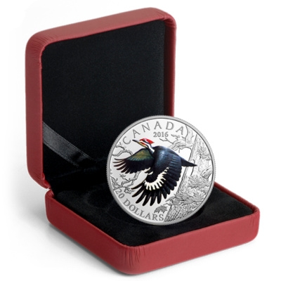 Der Helmspecht sogt mit seinem auffälligen roten Kamm für das große Finale der Silbermünzen-Serie „Colourful Birds of Canada“ der Royal Canadian Mint. Anlass für den Ausflug in die Vogelwelt ist das 100-jährige Jubiläum der Migratory Birds Convention zwischen den USA und Kanada. Drei mit liebevollen Farbapplikationen gestaltete und in höchster Proof-Qualität geprägte Sammlerstücke sind bereits erschienen. Der Pileated Woodpecker aus 1 oz Feinsilber rundet für Vogelfans nun die Sammlung ab.