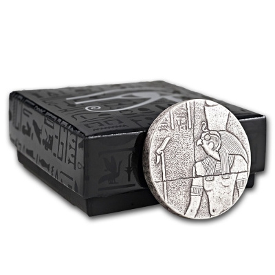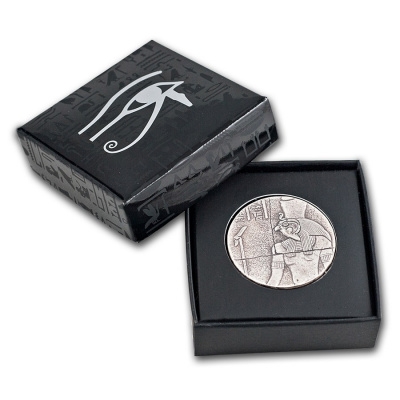 Die Silbermünze zeigt Horus mit dem Falkenkopf. Ein aufwendiges Antik-Finish bis hin zum wie aus Stein gemeißelten Münzrand macht das Sammlerstück zu etwas Besonderem. Das in Stempelglanz-Qualität geprägte Silberstück hat einen Durchmesser von 40 Millimetern bei einer Dicke von 4,75 Millimetern. Es enthält 2 oz Feinsilber. Als Ausgabeland gilt die zentralafrikanische Republik Tschad. Deshalb trägt die Münze den Nennwert von 1000 Francs CFA und zeigen auf der Wertseite das Wappen des Tschad, auf dem eine Ziege und ein Löwe einen Schild halten, hinter dem eine aufgehende Sonne zu sehen ist. Die Münzen werden in einem passend zur Serie gestalteten Etui ausgeliefert. Die Auflage ist auf 50.000 Stück begrenzt.