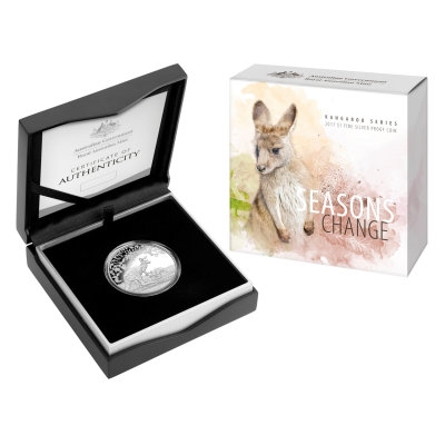 Am oberen Rand rahmen Zweige mit Blättern und Blüten das Motiv ein. Die Silbermünze enthält 1 oz Feinsilber bei einem Feingehalt von 999/1000 und hat einen Durchmesser von 40 Millimetern. Der Nennwert liegt bei einem Dollar und ist sowohl oberhalb des Känguru-Motivs als auch umseitig zusammen mit einem Porträt von Königin Elizabeth II. zu finden. Unten sind die Angaben zu Gewicht und Feingehalt verzeichnet. Der Münzrand ist geriffelt. Die Silbermünze in höchster Proof-Qualität wird eingebettet in ein Etui und einen Karton im Seriendesign ausgeliefert. Die Auflage ist auf 5.000 Exemplare begrenzt. Die Ausgabe in Stempelglanz ist entweder gekapselt oder im Blister erhältlich.