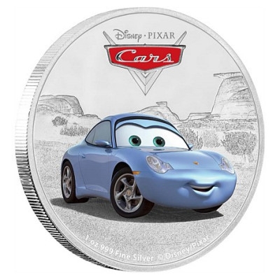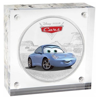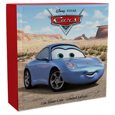 Sallys hübscher blauer Lack findet sich dank Farbapplikationen auch auf der in höchster Proof-Qualität geprägten Silbermünze wieder. Im Hintergrund sieht man die Wüstenlandschaft rund um Radiator Springs. Das Sammlerstück enthält 1 oz Feinsilber (Feingehalt 999/1000) und hat einen Durchmesser von 40 Millimetern. Der Münzrand ist geriffelt. Die Wertseite zeigt neben dem Nennwert von 2 Dollars das Porträt von Königin Elizabeth II. Ausgabeland ist die Insel Niue. Die Silbermünzen sind in ein durchsichtiges Präsentationsetui und einen Karton im Seriendesign verpackt.