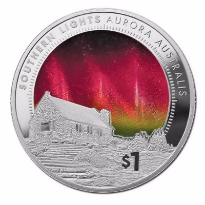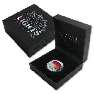 Den Vordergrund für die Südlichter bildet eines der Wahrzeichen der Region, die Church of the Good Shepherd am Ufer des Lake Tekapo. Der malerische Steinbau vor beeindruckendem Bergpanorama ist ein beliebtes Fotomotiv. Dank der Prägung in höchster Proof-Qualität sind auf der Münze sogar die einzelnen Steine der Fassade zu sehen. Darunter ist der Nennwert von 1 Dollar verzeichnet. Das Sammlerstück hat einen Durchmesser von 40 Millimetern und einen Feingehalt von 999/1000. Es enthält 1 oz Feinsilber. Der Münzrand ist geriffelt. Umseitig ist das Porträt der Königin Elizabeth II. von Ian Rank-Broadley abgebildet. Die Silbermünzen mit einer Auflage von nur 1.500 Stück werden mit einem nummerierten Echtheitszertifikat ausgegeben und sind in ein stilvolles Etui verpackt.
