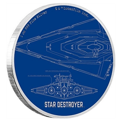 Nach der Erstausgabe mit dem Millennium Falken setzt die New Zealand Mint ihre Silbermünzen-Serie rund um die Raumschiffe des Star-Wars-Universums mit einem Schiff aus der Flotte des Imperiums fort – dem Imperial Star Destroyer. Die in höchster Proof-Qualität geprägte und mit blauen Farbapplikationen gestaltete Sammlermünze zeigt den Bauplan des gefährlichen Sternzerstörers. Die Auflage ist auf nur 10.000 Stück limitiert.
