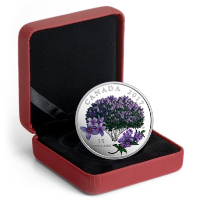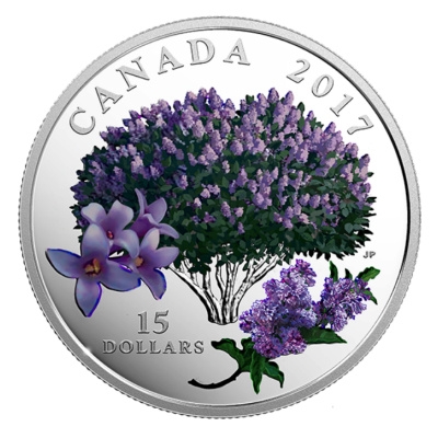 Die Silbermünze zeigt einen Fliederstrauch im Hintergrund. Die dunklegrünen Blätter heben die Vielzahl an zarten lila Blüten noch hervor. Im Vordergrund ist ein einzelner Zweig zu sehen, außerdem sind einige Blüten groß dargestellt, sodass der Betrachter ein umfassendes Bild dieser blühenden Schönheit bekommt. Nur den typischen Duft des Flieders kann das Sammlerstück nicht wiedergeben. Die Silbermünze wiegt 23,17 Gramm und hat einen Durchmesser von 36,07 Millimetern. Der Feingehalt liegt bei 99,99 Prozent. Der Nennwert von 15 CAD ist unterhalb der Fliederblüten zu finden. Umseitig zeigt die Münze das Susanna-Blunt-Porträt von Königin Elizabeth II. Der Münzrand ist geriffelt. Münzsammler erhalten dieses Stück gekapselt, im Etui und mit nummeriertem Echtheitszertifikat.