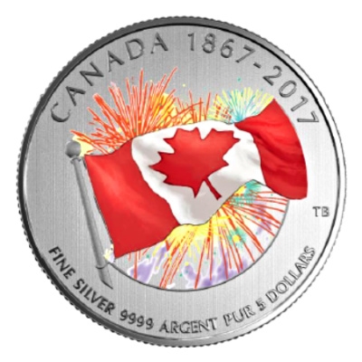 Im Jahr 1867 trat der British North America Act in Kraft, das Verfassungsgesetz, mit dem Kanada Dominion-Status innerhalb des britischen Reichs erlangte. Das war der Beginn der Selbstverwaltung der einstigen Kolonien und auch die Geburtsstunde eines kanadischen Bundesstaates. Offizielles Staatsoberhaupt blieb der britische Monarch; heute ist es Königin Elizabeth II., die deshalb auf den Münzen der Royal Canadian Mint abgebildet ist – dieses Sammlerstück eingeschlossen. Die Maple Leaf Flag, die im Zentrum des Motivs steht, wurde dagegen erst geraume Zeit später zum ersten Mal gehisst. Trotzdem weht sie als Symbol für ein stolzes Kanada über den Jubiläumsfeierlichkeiten. Hier wird sie von buntem Feuerwerk eingerahmt.