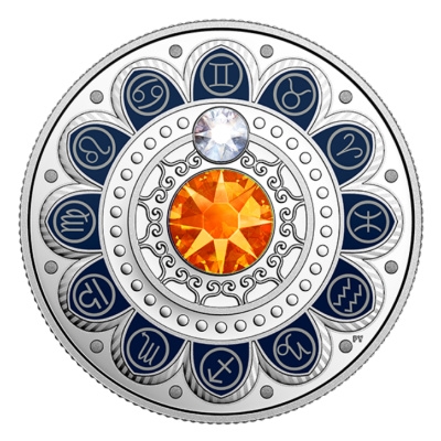 Das Symbol des Zwillings sieht aus wie eine römische Zwei. Auf der Silbermünze ist es in einem kolorierten Ring mit den anderen Sternzeichen-Symbolen zu finden. Es wird durch ein weißes Swarovski-Element markiert. Das Herz der Silbermünze bildet ein Swarovski-Kristall in feurigem Orange. Das Sammlerstück ist in höchster Proof-Qualität geprägt und hat einen Durchmesser von 27 Millimetern. Es enthält 1/4 oz Feinsilber (Feingehalt 99,99 Prozent). Umseitig findet man das Susanna-Blunt-Porträt von Königin Elizabeth II. Der Nennwert beträgt 3 CAD. Der Münzrand ist geriffelt. Ausgeliefert wird die Münze gekapselt, im Etui und mit nummeriertem Echtheitszertifikat.