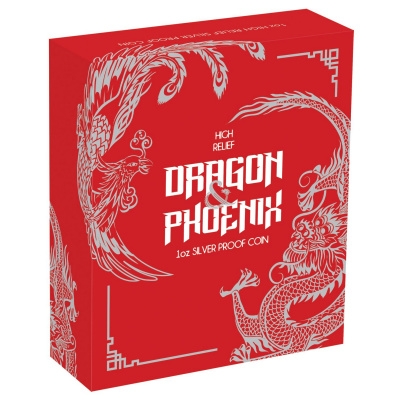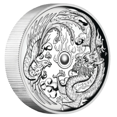 Stärke und Weisheit, Wohlstand und Glück – der Drache wird in China als mystisches Wesen verehrt und geachtet. Oft wird das Fabelwesen mit dem Schlangenleib auf der Jagd nach der Flammenperle dargestellt. Diese von Feuer eingehüllte Kugel wird als Symbol für Erkenntnis oder auch für Unsterblichkeit angesehen. Zusammen mit dem chinesischen Phönix steht der Drache auch für Harmonie in der Ehe; dabei symbolisiert er den männlichen Part, der Phönix den weiblichen. Auf dem Motiv der Silbermünze bilden der schlangenartige Drache und der Phönix mit seinen Flügeln und Schwanzfedern beinah einen vollständigen Kreis um die Flammenperle in der Mitte. Im Hintergrund sind außerdem stilisierte Wolken zu sehen.