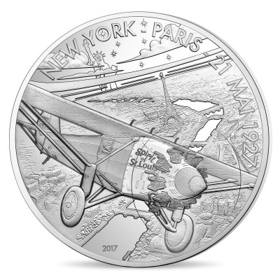 Die in höchster Proof-Qualität geprägte Silbermünze zeigt die Spirit of St. Louis über Paris. Die Seine mit ihren zahlreichen Brücken und der Eiffelturm sind deutlich zu erkennen. Im Hintergrund sieht man aber auch die Freiheitsstatue als Hinweis auf Lindberghs Startpunkt. Der Schriftzug „New York – Paris -21 Mai 1927“ verzeichnet Strecke und Datum der Atlantiküberquerung. Das Sammlerstück aus 20 Gramm Feinsilber hat einen Durchmesser von 37 Millimetern. Der Feingehalt liegt bei 900/1000. Der Nennwert von 10 Euro ist umseitig zu finden. Die Wertseite zeigt außerdem zahlreiche historische und moderne Flugzeuge verschiedenster Bauweisen sowie zwei Piloten im Vordergrund. Die Auflage der 10-Euro-Münze ist auf 3.000 Stück limitiert die mit nummeriertem Echtheitszertifikat, gekapselt und im Etui ausgeliefert werden. Bei der Ausgabe aus 5 oz Feinsilber beträgt die Auflage nur 250 Stück.