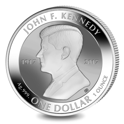 Die Silbermünze zeigt Kennedy im Profil, eingerahmt von den Daten 1917 und 2017. Sie ist in reverse proof geprägt, also mit mattem Hintergrund und spiegelndem Porträt. Unten findet man den Nennwert von einem Dollar. Die Münze, die von der Pobjoy Mint hergestellt wurde, hat einen Durchmesser von 38,60 Millimetern und enthält 1 oz Feinsilber (Feingehalt 999/1000). Der Münzrand ist geriffelt. Umseitig ist ein Porträt von Königin Elizabeth II. zu sehen, die das offizielle Staatsoberhaupt des Ausgabelandes Virgin Islands ist. Die Auflage ist auf 50.000 Stück limitiert.