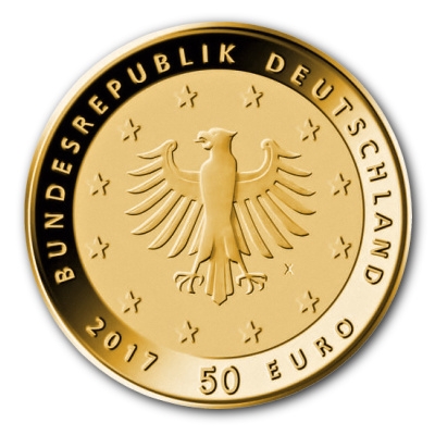 deutschland-lutherrose-viertel-oz-gold-wertseiteDie in Stempelglanz-Qualität geprägte Goldmünze hat einen Durchmesser von 20 Millimetern und einen Feingehalt von 99,99 Prozent. Sie enthält 1/4 oz Feingold. Der Münzrand ist geriffelt. Die Wertseite zeigt den Bundesadler, der umringt ist von den Europasternen. Der Nennwert ist hier ebenso zu finden wie die Jahreszahl 2017 und der Schriftzug „Bundesrepublik Deutschland“. Auch das Münzzeichen der jeweiligen Prägestätte ist auf dieser Seite aufgeprägt: „A“ für Berlin, „D“ für München, „F“ für Stuttgart, „G“ für Karlsruhe und „J“ für Hamburg. Insgesamt werden 150.000 Exemplare ausgegeben, wobei je 30.000 auf jede der fünf Prägestätten entfallen.