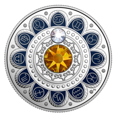 Auf der Silbermünze sind die Symbole aller zwölf Tierkreiszeichen in einem Ring angeordnet. Ein weißes Swarovski-Element markiert das aktuelle Zeichen, in diesemFall die beiden „Scheren“, die für den Krebs stehen. Den Mittelpunkt der Silbermünze bildet ein weiterer Swarovski-Kristall in einer Farbe, die mit dem Sternzeichen in Verbindung gebracht wird. Hier ist er bernsteingelb. Die in höchster Proof-Qualität geprägte Silbermünze einen Durchmesser von 27 Millimetern und enthält 1/4 oz Feinsilber (Feingehalt 99,99 Prozent). Auf der Wertseite findet man das Susanna-Blunt-Porträt von Königin Elizabeth II. Der Nennwert beträgt 3 CAD. Der Münzrand ist geriffelt. Die Sammlerstücke werden gekapselt, im Etui und mit nummeriertem Echtheitszertifikat ausgegeben.