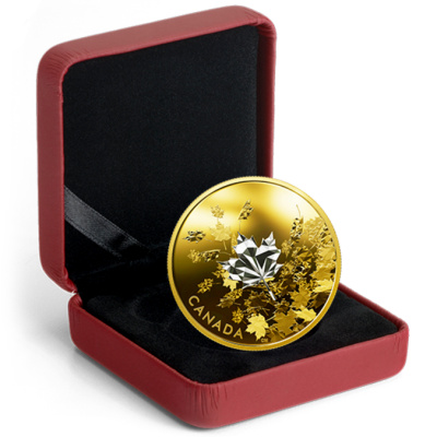 canada-whispering-maple-leaves-3-oz-silber-vergoldetWarme Sonnenstrahlen, eine leichte Brise und Ahornblätter, die im Wind rascheln: Es ist Sommer in Kanada. Die Royal Candian Mint hat diese Jahreszeit jetzt auf einer außergewöhnlichen Silbermünze eingefangen: Das Sammlerstück aus 3 oz Feinsilber ist reichlich vergoldet, nur das zentrale Ahornblatt auf dem Revers und das Porträt der Queen auf der Wertseite heben sich in spiegelndem Silber von dem warmen Schein des Goldes ab. Nur 3.500 von diesen Sammlermünzen wurden geprägt.