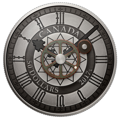 Jetzt schlägt die Stunde der Münzsammler! Nicht nur der Staat Kanada feiert 2017 einen runden Geburtstag, sondern auch eines seiner berühmtesten Wahrzeichen: Am 1. Juli 1927, also vor 90 Jahren, wurde die Uhr des Peace Towers auf dem Parliament Hill in Ottawa in Gang gesetzt. Aus diesem Anlass hat die Royal Canadian Mint ein echtes Kunstwerk im Programm: Die Silbermünze im Uhrdesign gibt das Vorbild getreulich wieder und ist mit Elementen aus historischem Kupfer veredelt. Die Auflage beträgt nur 1200 Stück.