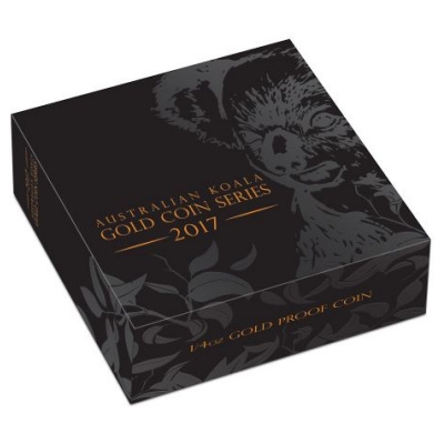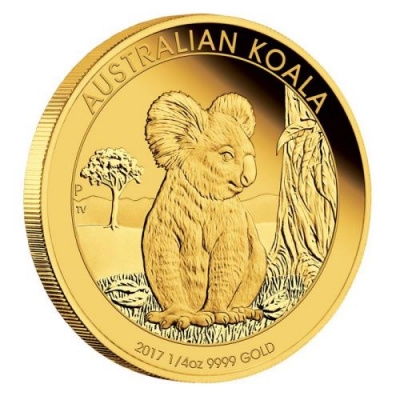 Das Motiv der Koala-Goldmünzen entspricht dem der Silbermünzen und wechselt jährlich. 2017 zeigt es einen Koala am Fuß eines Eukalyptusbaums. Mit fast schelmischem Blick sieht das Tier, das den Kopf zur Seite gedreht hat, zum Betrachter. Neben dem Koala liegen ein paar Eukalyptusblätter im Gras, im Hintergrund ist ein weiterer Baum zu erkennen. Das Prägejahr, das Gewicht und der Feingehalt von 99,99 Prozent sind unten verzeichnet. Die Goldmünze hat einen Durchmesser von 20,60 Millimetern bei einer maximalen Dicke von 2 Millimetern. Der Münzrand ist geriffelt.