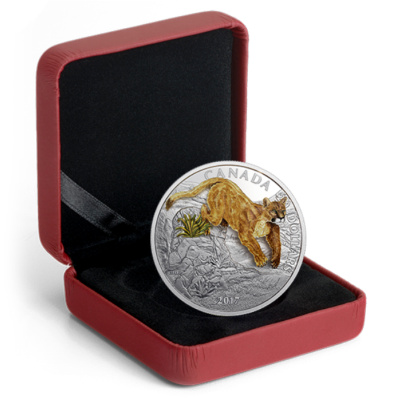 Dass das Motiv mit dem 3D-Puma eine eindrucksvolle Wirkung entfalten kann, liegt vor allem auch an dem detailreichen, in höchster Proof-Qualität geprägten Hintergrund. Die Silbermünze hat einen Durchmesser von 38 Millimetern und enthält 1 oz Feinsilber. Der Feingehalt liegt bei 99,99 Prozent. Sie hat einen Nennwert von 20 CAD, der rechts verzeichnet ist. Der Münzrand ist geriffelt. Umseitig ist das Susanna-Blunt-Porträt von Königin Elizabeth II. zu finden. Das Sammlerstück wird im Etui und zusammen mit einem nummerierten Echtheitszertifikat ausgegeben. Die Auflage ist auf 6.000 Stück limitiert.