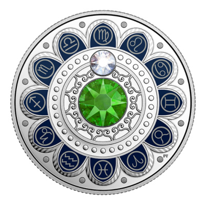 zodiak-jungfrau-silber-swarovski-kristall-3Früher wurde die Jungfrau mit einer Kornähre dargestellt und mit der Geschichte von Persephone in Verbindung gebracht, die in die Unterwelt entführt wurde und im Frühjahr wieder zurückkehren darf. Die Schleife, die zum Symbol des Sternzeichens gehört, steht für die Kornähre, ansonsten gleicht es einem M. Im Kreis der Sternzeichen, die auf der Silbermünze abgebildet sind, ist es mit einem weißen Swarovski-Element markiert. Im Zentrum steht ein hellgrüner Swarovski-Kristall. Die in höchster Proof-Qualität geprägte Silbermünze hat einen Durchmesser von 27 Millimetern. Sie enthält 1/4 oz Feinsilber (Feingehalt 99,99 Prozent). Der Nennwert von 3 CAD ist umseitig zu finden, zusammen mit dem Susanna-Blunt-Porträt von Königin Elizabeth II. Der Münzrand ist geriffelt. Das Sammlerstück wird gekapselt, im Etui und mit nummeriertem Echtheitszertifikat ausgegeben.