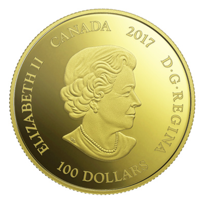 rcm-raven-brings-the-light-14-karat-gold-wertseiteKein anderes Metall, so die kanadische Prägeanstalt, fängt das Wesen des Lichts besser ein als Gold. Sein warmer Glanz erzeugt im Wechsel mit den dunklen Linien ein außergewöhnliches Motiv. 14 Karat Gold enthält die Münze mit einem Durchmesser von 27 Millimetern. Dabei wiegt sie zwölf Gramm. Der Münzrand ist geriffelt. Umseitig zeigt das selbstverständlich in höchster Proof-Qualität geprägte Sammlerstück das Porträt von Königin Elizabeth II. über dem Nennwert von 100 CAD. Es wird im Etui und mit einem nummerierten Echtheitszertifikat ausgeliefert.