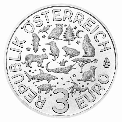 oesterreich-tier-taler-eisvogel-kupfer-nickel-koloriert-wertseiteZusätzlich zur Kolorierung sind die Münzen, die einen Durchmesser von 34 Millimetern und ein Gewicht von insgesamt 16 Gramm haben, auch noch mit Leuchteffekt versehen: Im Dunkeln erstrahlen die Umrisse des Tieres. Auf der Wertseite sind alle zwölf Tiere versammelt, zusammen mit Bäumen, Sternen, Mond und Blumen. Der Nennwert von 3 Euro macht die Münzen zum gesetzlichen Zahlungsmittel in Österreich. Sie werden in der Qualität handgehoben ausgegeben und haben eine Auflage von 50.000 Exemplaren.