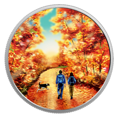 Im Herbst bieten Kanadas Wälder ein einzigartiges Farbenspiel. Mit der Abschluss-Ausgabe der Silbermünzen-Serie „Great Canadian Outdoors“ lädt die Royal Canadian Mint jetzt zu einem Spaziergang bei Sonnenaufgang durch den bunt gefärbten Herbstwald ein. Bei Licht schimmert das Sammlerstück in Gold- und Orangetönen. Im Dunkeln bringt die Glow-in-the-Dark-Technologie das sanfte Morgenlicht noch schöner zur Geltung. Nur 15.000 Stück dieses Blickfangs für Naturfans werden ausgegeben.