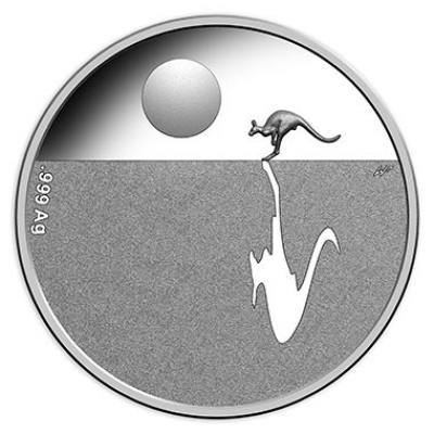kangaroo-at-sunset-2018-silber-wertseiteDer Künstler Wojciech Pietranik brauchte nur wenige Striche, um ein aussagekräftiges und fesselndes Bild der australischen Landschaft zu schaffen. Der gebürtige Pole, der auch die Medaillen der Olympischen Sommerspiele 2000 in Sydney mitgestaltete, beschränkte sich auf die Horizontlinie, die Sonne als Scheibe am Himmel und das Känguru, dessen Schatten sich zum Betrachter hin ausbreitet. Links findet man am Rand den Feingehalt von 999/1000. Das Prägejahr 2018 ist auf der Wertseite verzeichnet, die das Porträt von Queen Elizabeth II., des offiziellen australischen Staatsoberhauptes, zeigt.