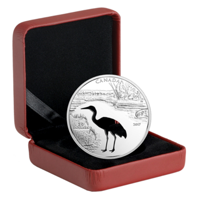 Die Silbermünze mit dem großzügigen Durchmesser von 54 Millimetern zeigt den natürlichen Lebensraum des Schreikranichs in Kanada. Das flache Gewässer mit den Pflanzen am Rand ist in höchster Proof-Qualität detailreich geprägt. Im Mittelpunkt steht der kranichförmige Ausschnitt als Blickfang. Das Sammlerstück enthält 1,7 oz Feinsilber und hat den hohen Feingehalt von 99,99 Prozent. Seitlich ist der Nennwert von 30 CAD zu finden. Der Münzrand ist geriffelt. Das Susanna-Blunt-Porträt von Königin Elizabeth II. auf der Rückseite ist wegen des Ausschnitts nach oben verschoben. Den Hintergrund ziert ein Muster aus stilisierten Ahornblättern. Die Silbermünzen werden zusammen mit einem nummerierten Echtheitszertifikat und verpackt in ein Etui ausgegeben. Die Auflage ist auf 5.500 Stück limitiert.