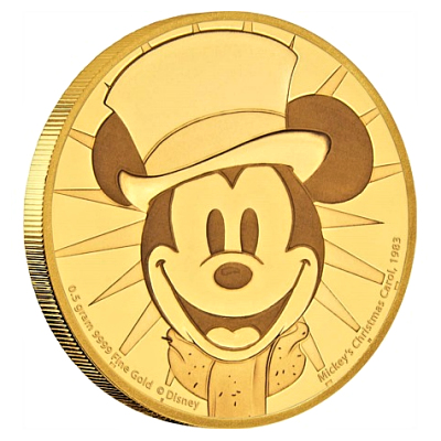 Mit einer weihnachtlichen Ausgabe schließt die New Zealand Mint das Jahr 2017 in der Serie „Mickey Through the Ages“ ab: „Mickey’s Christmas Carol“ von 1983 ist eine Adaption der berühmten Weihnachtsgeschichte von Charles Dickens. Neben der Goldmünze und der kolorierten Silbermünze bringt die Prägeanstalt auch wieder eine Goldmünze aus 0,5 Gramm Feingold heraus, die in eine schön gestaltete, goldfarbene Coincard verpackt ist.