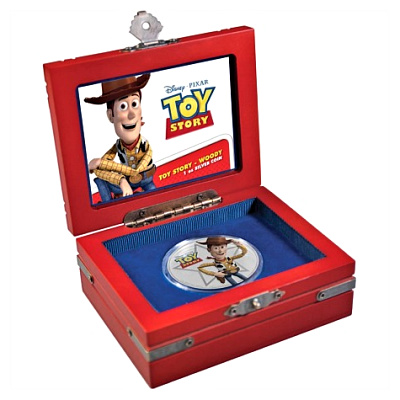 Nach den Helden aus dem Disney-Pixar-Film Cars widmet die New Zealand Mint jetzt „Toy Story“ eine Silbermünzen-Serie. Die erste Ausgabe ist natürlich dem Cowboy Sheriff Woody vorbehalten. Gestaltet mit liebevollen Farbapplikationen und in höchster Proof-Qualität geprägt, erweckt die Münze die Filmfigur zum Leben. Der Cowboy ist in ein Etui verpackt, das von der Spielzeugtruhe im Film inspiriert ist. Die Auflage ist auf 10.000 Stück begrenzt.
