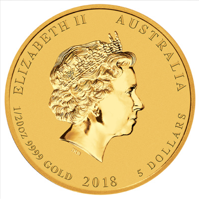 lunar-year-dog-gold-koloriert-2Im Hintergrund sind Felsen und eine stilisierte Kiefer zu erkennen, außerdem findet man das chinesische Schriftzeichen für „Hund“. Die Wertseite zeigt das Porträt von Königin Elizabeth II. Der Nennwert liegt bei 5 australischen Dollars. Die Goldmünze enthält 1/20 oz Feingold und hat einen Feingehalt von 99,99 Prozent. Der Durchmesser beträgt 14,80 Millimeter. Der Münzrand ist geriffelt. Die in Stempelglanz-Qualität geprägten Goldmünzen werden gekapselt ausgeliefert.