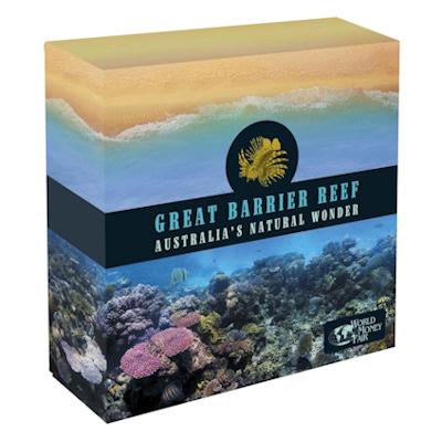 Das Great-Barrier-Riff ist eines der Naturwunder der Erde. Unzählige Arten von Fischen, Krebsen, Muscheln, Schildkröten, Seesternen, Delfinen und Haien tummeln sich hier vor der Nordostküste Australiens im Wasser. Die Artenvielfalt des Riffs holt man sich mit dieser vergoldeten Silbermünze – einer Ausgabe zur World Money Fair 2018 – nach Hause. Sie enthält 5 oz Feinsilber und hat eine streng limitierte Auflage von nur 500 Stück.