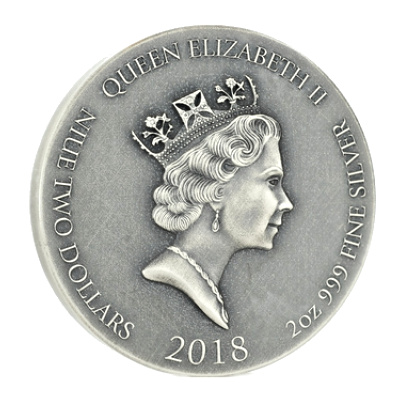 Dank der High-Relief-Prägung und einem Antik-Finish wirkt die Silbermünze wie ein uraltes Sammlerstück aus fast schon biblischer Zeit. Sie enthält 2 oz Feinsilber (Feingehalt: 999/1000). Der Durchmesser beträgt 39 Millimeter bei einer Stärke von 7 Millimetern. Die Wertseite zeigt ein Porträt von Königin Elizabeth II. Daneben sind der Nennwert von 2 Neuseeland-Dollars und das Ausgabeland Niue verzeichnet. In den glatten Münzrand ist die Seriennummer der jeweiligen Münze eingraviert. Die Sammlerstücke werden in einem Etui ausgeliefert, das wie eine ledergebundene Bibel gestaltet ist.