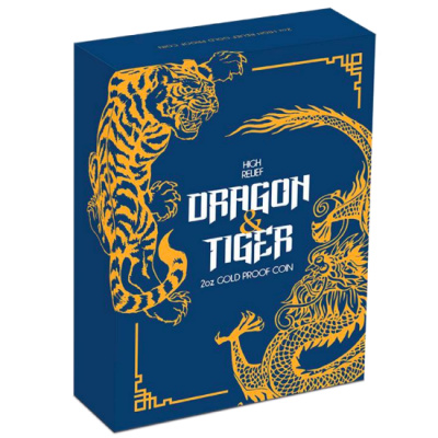dragon-and-tiger-2018-2-oz-gold-shipperDie Goldmünze ist in höchster Proof-Qualität und prächtigem High Relief geprägt. Sie enthält 2 oz Feingold (Feingehalt 99,99 Prozent) und hat einen Durchmesser von 36,60 Millimetern. Die Dicke liegt bei maximal 5,2 Millimetern. Der Münzrand ist geriffelt. Die Wertseite zeigt das Rank-Broadley-Porträt von Königin Elizabeth II. und den Nennwert von 200 Dollars. Ausgabeland ist Australien. Das Sammlerstück wird in einem Holzetui und einem schön gestalteten Geschenkkarton ausgegeben. Ein nummeriertes Echtheitszertifikat gehört dazu.