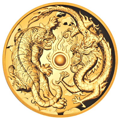 dragon-and-tiger-2018-2-oz-goldFeng-Shui-Fans aufgepasst: Die australische Perth Mint hat eine neue eindrucksvolle Goldmünze in High-Relief-Prägung im Programm, die Yin und Yang in perfektem Gleichgewicht zeigt. Die beiden Prinzipien werden auf dem Sammlerstück durch einen Drachen und einen Tiger repräsentiert. Die detailreich gestaltete Goldmünze aus 2 Unzen Feingold hat eine limitierte Auflage von nur 500 Stück.
